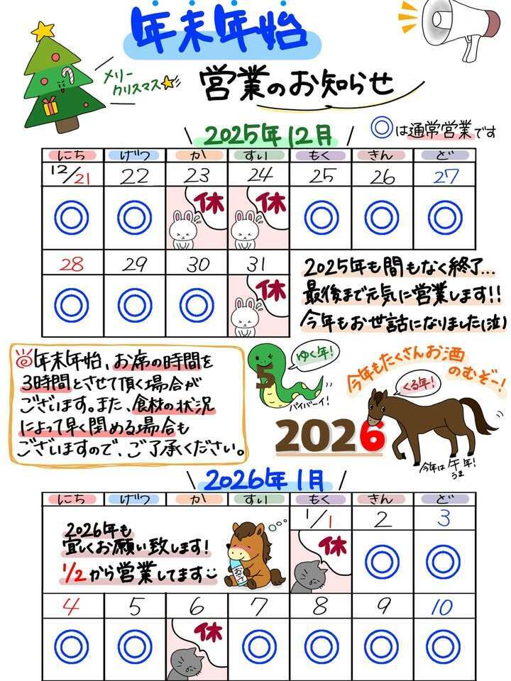 年末年始の営業予定が決まりましたのでご連絡です🗣