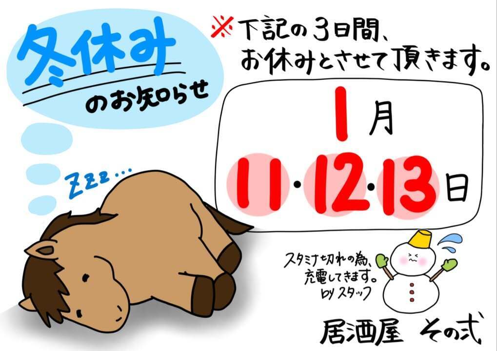 1/11・12・13 の営業はお休みです💤