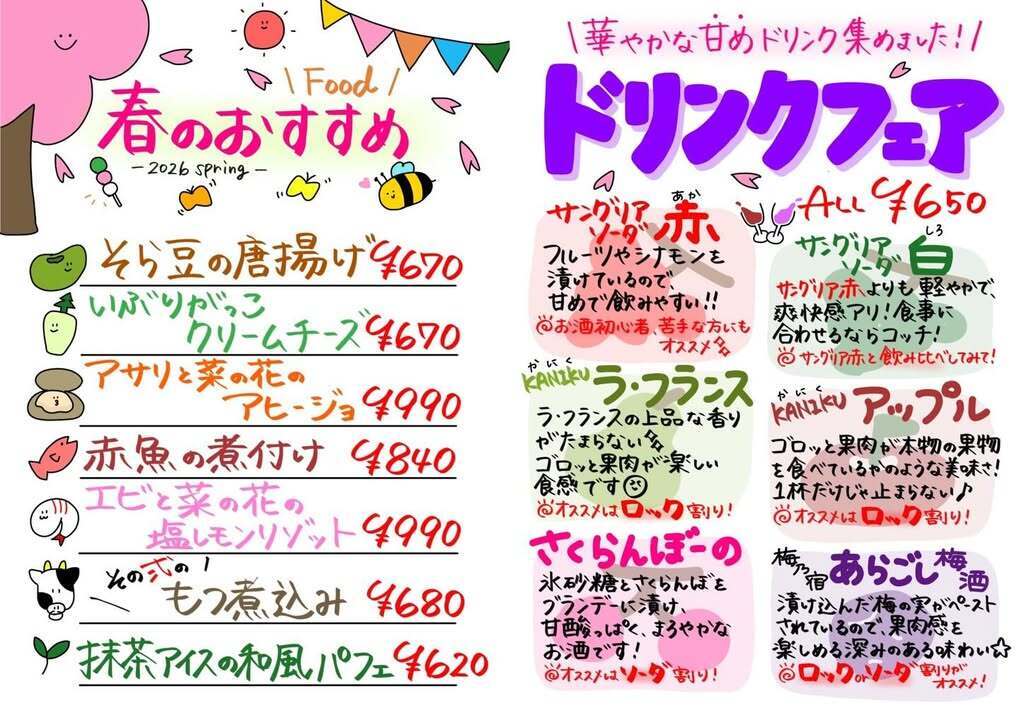 ・春のおすすめドリンクの中でも、サッパリしたものが飲みたいという方は、サングリアおすすめです!どちらもあっさり飲めるので、肉料理との相性抜群👍これに合わせるならその弍イチオシ「牛ハラミステーキ」を頼むべし⁉️
